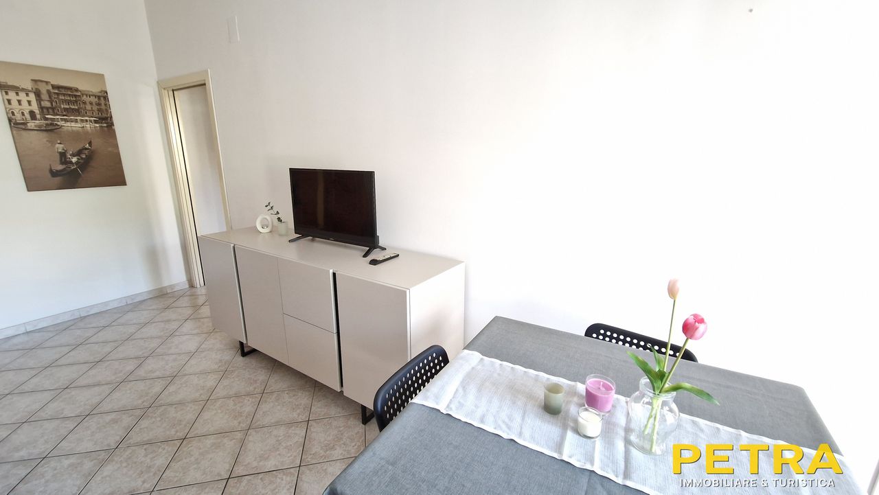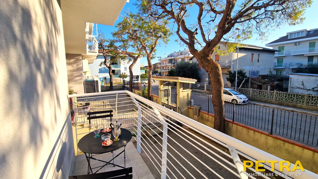 Apartmán je situován v 1. patře, v klidné vilkové jižní části města San Benedetto del Tronto, 250 metrů od pláže a je obklopen zelení. Trilokál pro 6 osob: ložnice s manželským lůžkem, ložnice s palandou, obývací místnost s rozkládacím dvoulůžkem a s kuchyňským koutem, koupelna a balkon. TV, pračka, žehlička a žehlicí prkno, vysoušeč vlasů a parkování v uzavřeném dvoře u domu.